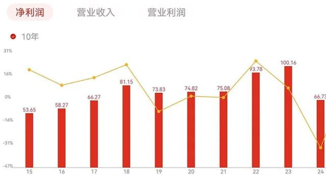 再来看看洋河股份的业绩,2024年公司营业收入为288.8亿元,同比下降12.8%;扣非归母净利润为68.4亿元,同比下降30.6%。其中第四季度,公司营业收入为13.6亿元,同比下降52.2%;2025年一季度营业收入同比降31.9%,归母净利润降39.9%。显然,洋河股份的经营情况处于加速恶化之中,还没探明底部,与茅台、五粮液、泸州老窖等白酒龙头经营差距显著拉大,明显是掉队了。